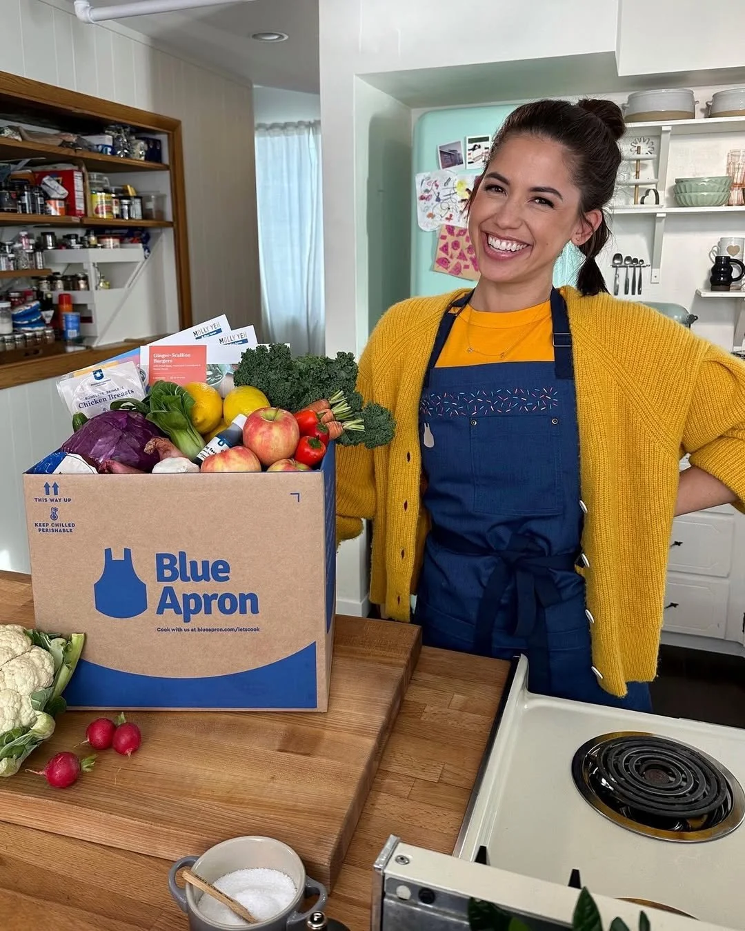 The Blue Apron x Molly Yeh collaboration was a limited-time meal kit partnership featuring exclusive recipes from Molly Yeh—Food Network star, cookbook author, and blogger known for her creative takes on comfort food inspired by her Jewish and Chinese heritage.