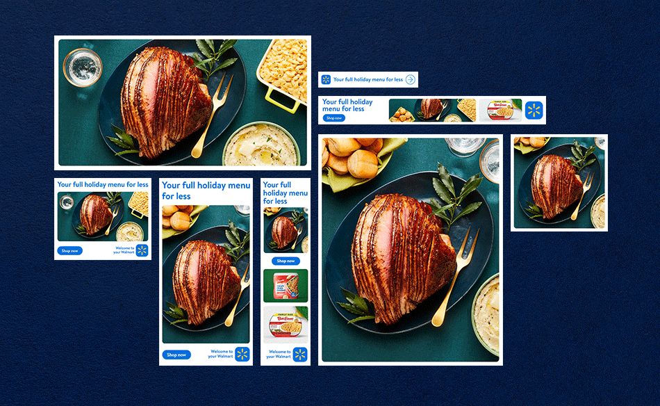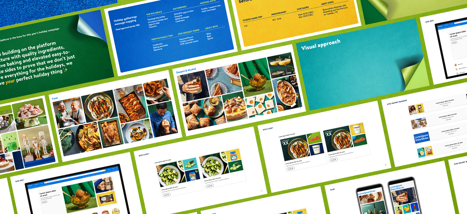 As the creative lead for the Grocery vertical, I was tasked with establishing the visual direction of food & beverage photography and digital assets for Walmart’s Holiday 2023 campaign. The goal: create a cohesive, elevated look and feel across landing pages, email, and social that felt festive and premium—while still aligning with Walmart’s broader campaign identity.